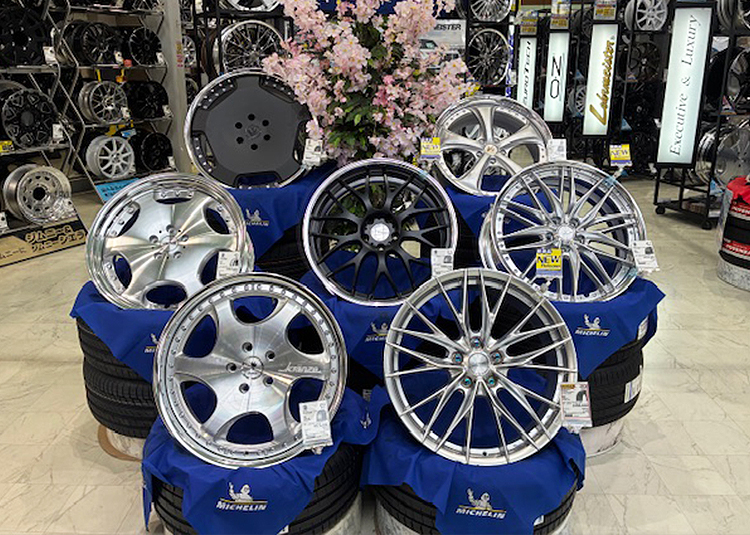 大阪箕面店ではホイールメーカー、車種別に商品を多数展示中!