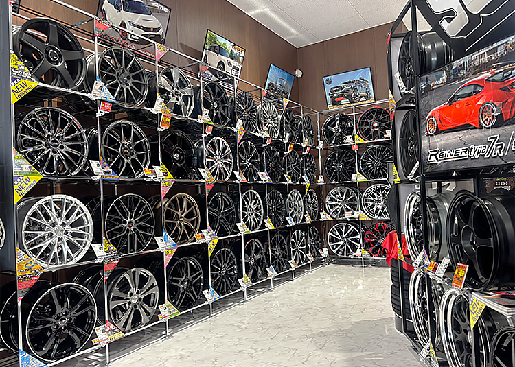 店内にはタイヤ、ホイールの他にカラーナットや盗難防止用のロックナット、収納用タイヤカバー等も展示中です!